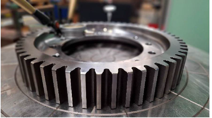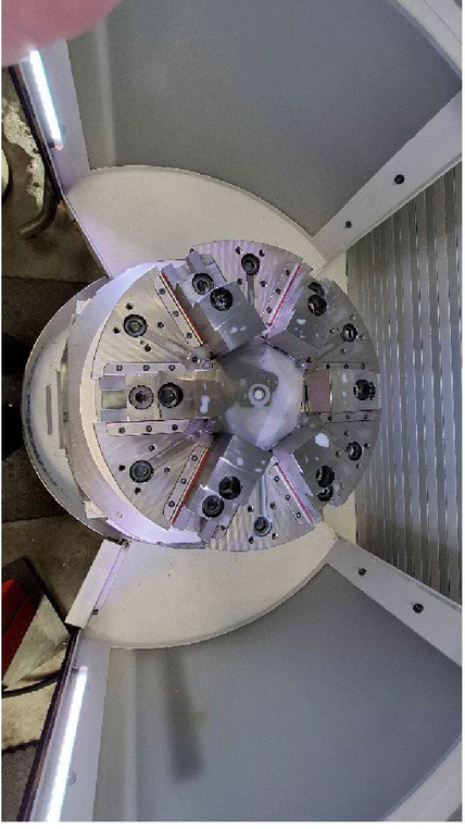 Im aktuellen Fall ging es nicht um einen Ersatz bestehender Produkte, sondern um das „für dieses Projekt geeignetsten Spannmittel“. Konkret befinden sich hierfür nun insgesamt sieben Kraftspannfutter KFG (Durchmesser: 400 mm und 630 mm mit sechs Spannbacken – Spitzverzahnung 1/16" x 90°) in der Anwendung. Mit der Spitzverzahnung gelingt die radiale Verstellung der Spannbacken auf unterschiedliche Werkstück- und Spanndurchmesser. Die 3 x 2 Backenpaare spannen zentrisch ausgleichend, um die Spannkraft gleichmäßig zu verteilen, eine mittige Spannung während der Bearbeitung zu gewährleisten und um WerkstückUnrundheiten auszugleichen. Als im Laufe des Projekts die nächste Fertigungsmaschine hinzukam, wurden weitere fünf Kraftspannfutter gleicher Bauart geordert – das zeigt, der Prozess „läuft“. Aktuell steht die Beauftragung eines weiteren Moduls an.